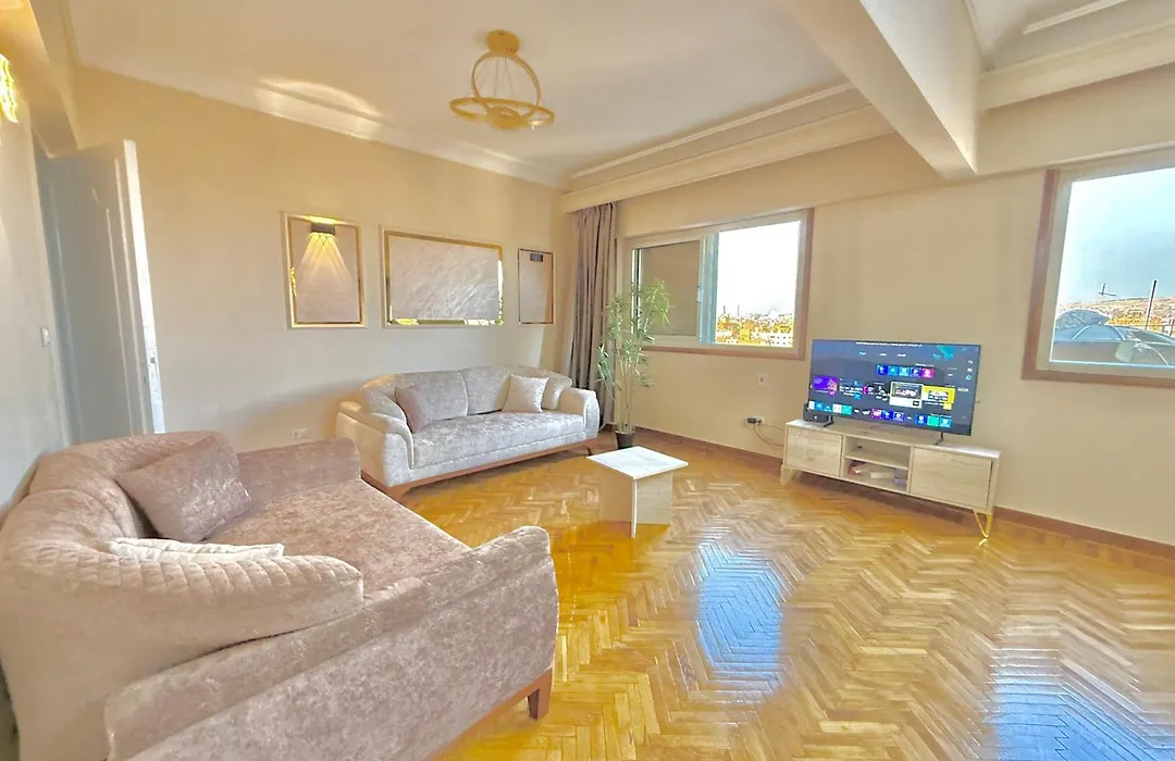 The spacious 300 m² Golden Mile - Downtown Cairo Apartment lies 2.4 km from the hallowed Al-Hussein Mosque and approximately 5 minutes' walk from Saad Zaghloul tube station. Situated just moments from House of Representatives, the apartment offers a sunbathing terrace where guests can relax and enjoy the city view.